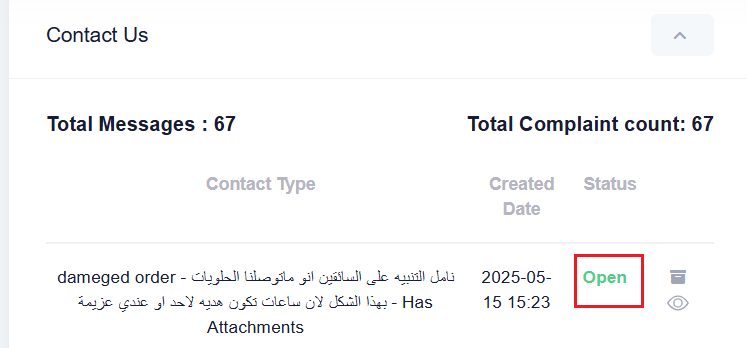 إذا كانت الكونتكت مفتوحة (Open) → لا تقم بأي إجراء، والطلب يتم متابعته من قبل خدمة العملاء