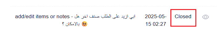 ثم يتم التوضيح بنوت من الموظف اللي معه التكت جاري العمل على المشكلة " المتجر مغلق "