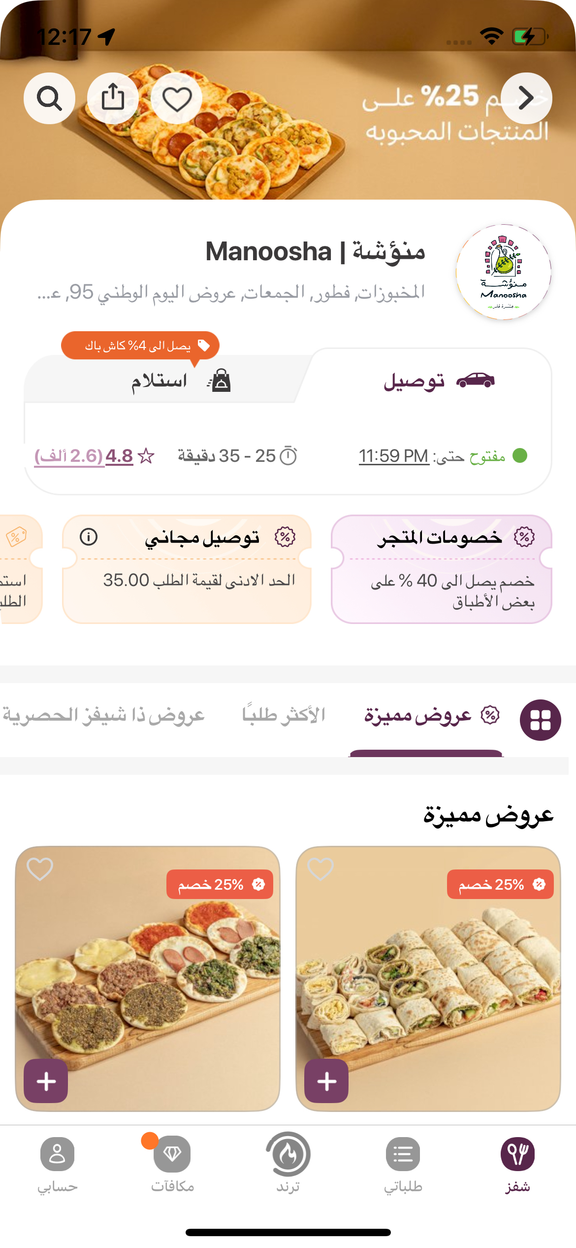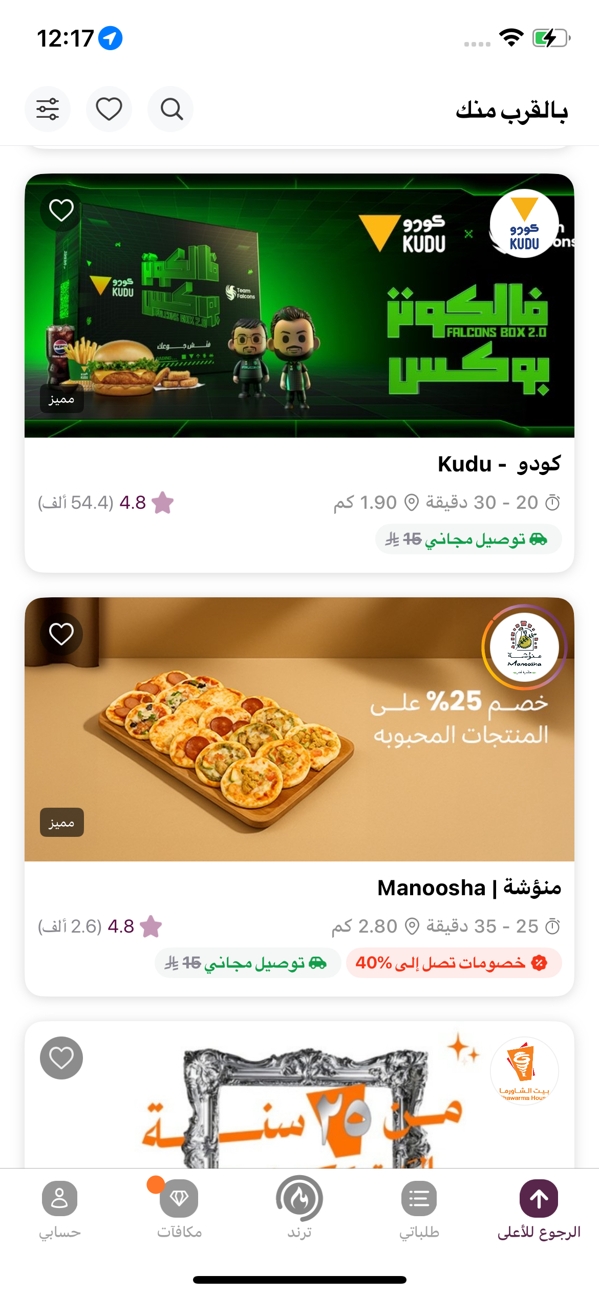 تمت إضافة المسافة بين المستخدم والمتجر لتظهر بجانب وقت التوصيل، لتوضيح مدى قرب المتجر من موقع العميل.